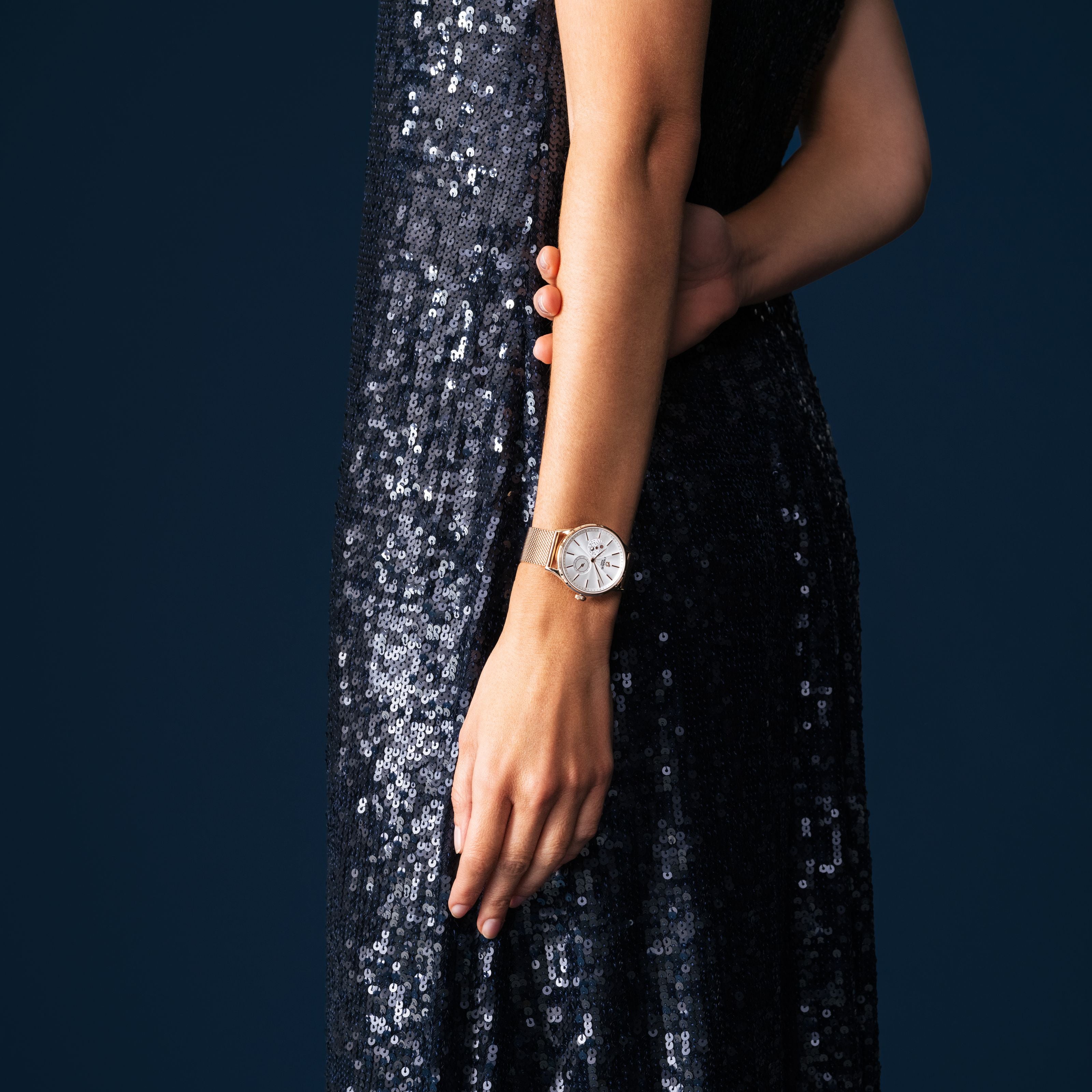 SULLY - Quartz Phase de Lune - Doré rose Montres CHARLIE Maille milanaiseSULLY - Quartz Phase de Lune - Doré rose Montres CHARLIE