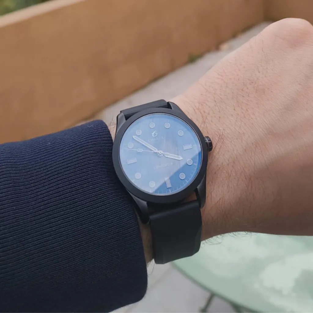 Thanks to its case and screw-down crown, the Concordia is perfectly watertight and has passed pressure tests of 30 atmospheres (ATM) with flying colors. With this water resistance, you can practice scuba diving without fear.