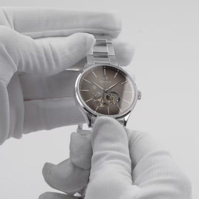 Dessinée et assemblée en France, l'Initial Cœur Ouvert Jour/Nuit cadran taupe soleillé présente des lignes épurées, au design à la fois classique et contemporain. Cette montre automatique pour homme laisse apparaître les rouages de son mouvement Citizen Miyota Calibre 82S7 pour un équilibre parfait entre beauté intemporelle et mécanique horlogère. Avec son boîtier en acier 316L de 40mm de diamètre, son mécanisme apparent, son disque jour/nuit, son verre saphir et ses bracelets interchangeables, elle saura vous accompagner pendant de nombreuses années.